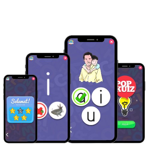 Aplikasi ini juga tersedia dengan pop kuiz yang dapat melatih minda kanak-kanak serta menambah minat mereka untuk membaca.